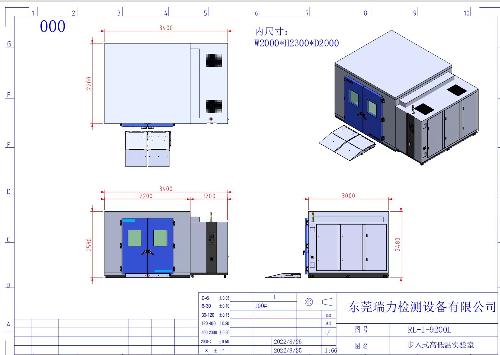 步入式環(huán)境試驗(yàn)箱內(nèi)箱尺寸(可定制):